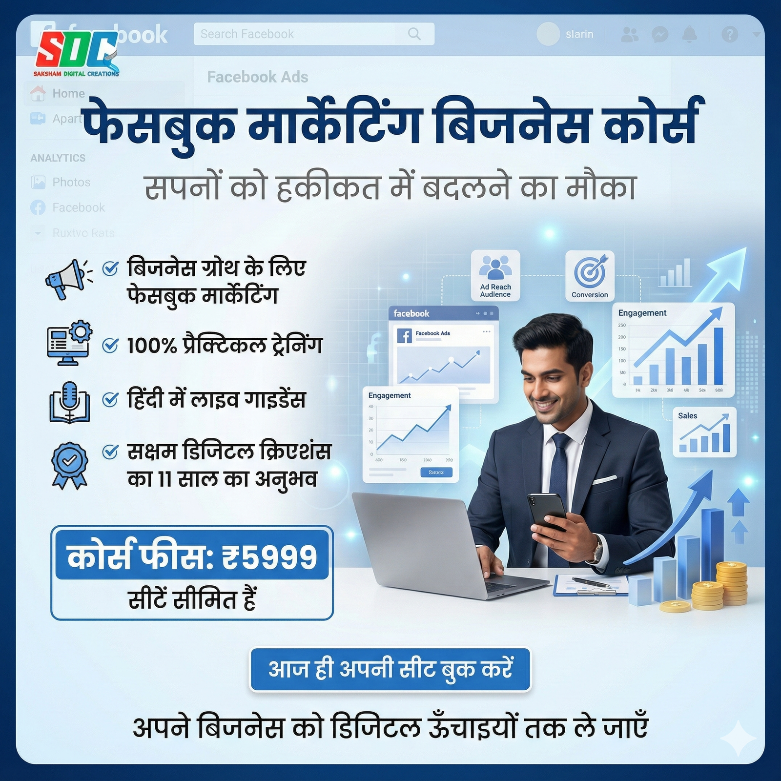 Social Media: Available on Facebook and Instagram as “Saksham Digital Creations”