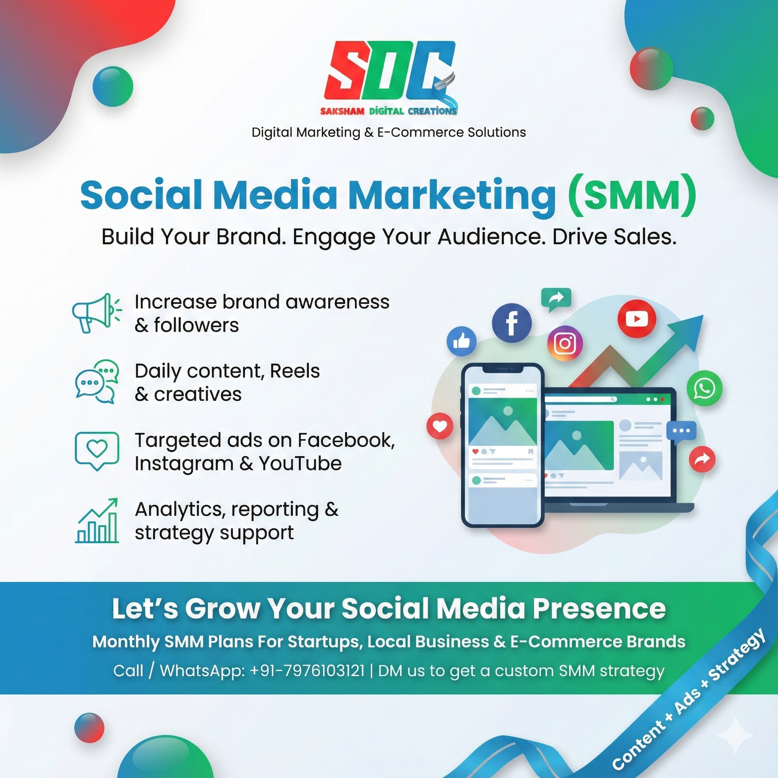 Saksham Digital offers comprehensive SMM packages customized to your brand needs. Here are their key SMM services: